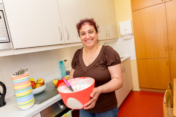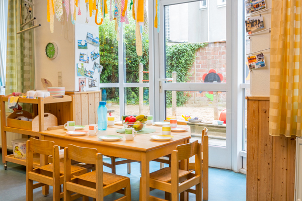 Außerdem ist hier unsere Küche, in der wir schon Kuchen gebacken oder selbst unseren Obstsalat für den Nachmittagssnack geschnipselt haben.